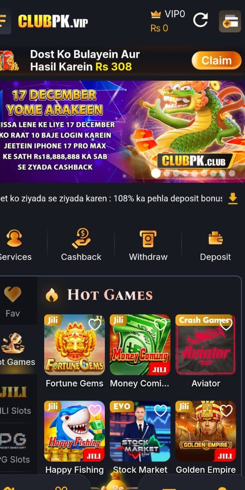 The ClubPk Game is an online gaming app designed for entertainment and reward-based play. It allows users to play different games, join activities, and earn bonuses while having fun.