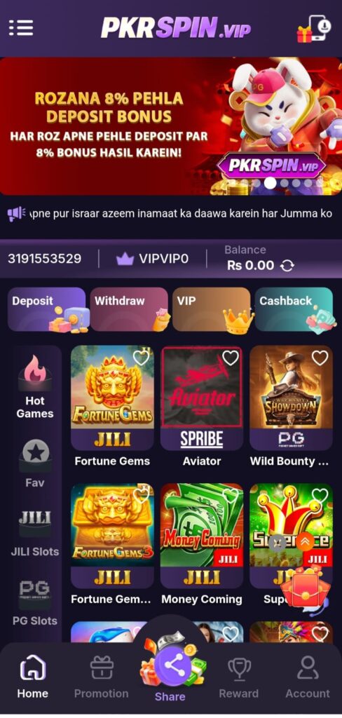 Pkr Spin Game is a simple, fast, and beginner-friendly spinning application designed for mobile users. It offers daily rewards, multiple betting options, referral bonuses, and quick gameplay.